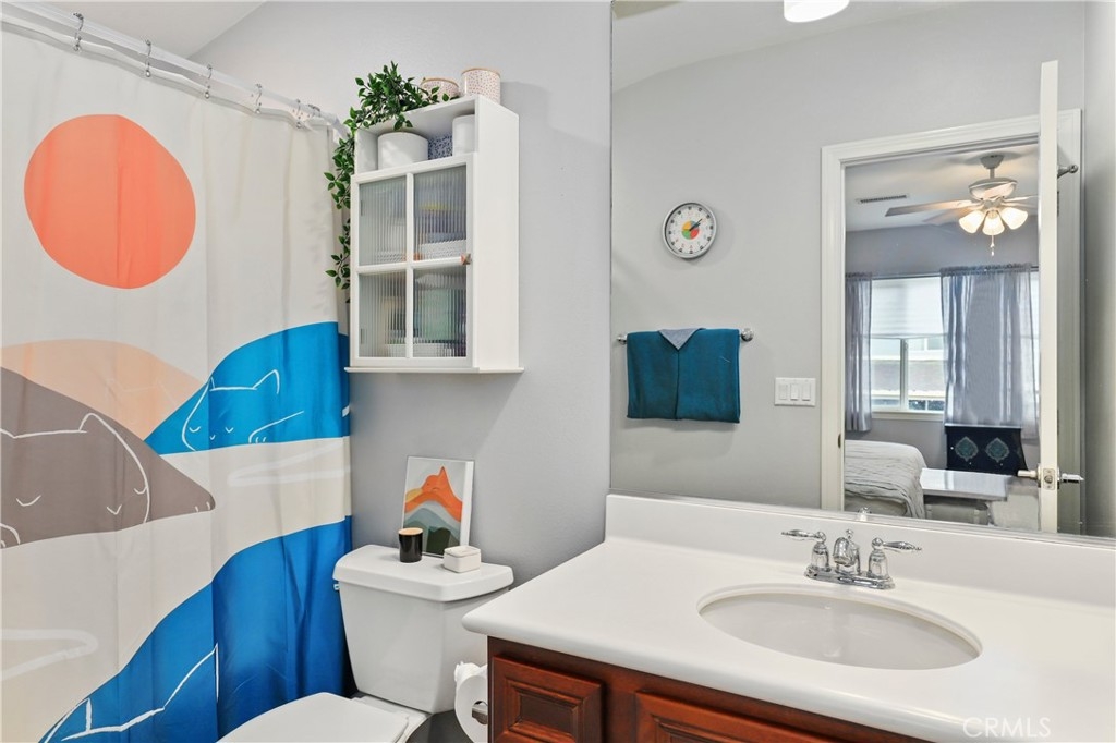 SINGLE STORY IN ADELINE FARMS- This is such a spectacular layout! As you pull up you will notice the 3 Car Garage and striking red Front Door. There is potential RV Parking too! The cozy front porch has a gate to keep pets in or visitors out. What a perfect place to enjoy your morning coffee! Welcome to your 4 Bedroom 3.5 Bath Home where you get single story living with the bonus of a 2nd Primary Suite that features wall to wall carpet, a walk in closet, a small little "Kitchenette/Coffee Bar", and a full Bathroom upstairs. Situated in the highly desirable Temecula School District, this popular Neighborhood has LOW TAXES, NO HOA, SOLAR, several parks, miles of hiking trails, and it's minutes to the freeway. The entire house has been recently painted and there is NO CARPET DOWNSTAIRS- instead you will enjoy beautiful LVP Flooring. You're going to love the Kitchen- It has a ton of cabinet and counter space. Featuring luxurious 2 tone cabinets, a huge island with seating for 4, a dining space, and a desk area that is perfect for a coffee bar- this Chef Style Kitchen is a DREAM! It opens up to the oversized Livingroom with a RARE DOUBLE SIDED FIREPLACE and there is a French Door leading outside. 2 Bedrooms are situated on one side of the house with a full Bathroom in between that has a dual sink vanity and shower/tub combo. The Primary Suite is behind the Kitchen, offering plenty of privacy from the rest of the home. It has a standalone shower, soaking tub, dual sink vanities, and a walk in closet. Adjacent to the Primary Suite is a "BONUS" Room that could be Bedroom #5 or home office space. There is a 1/2 Bath and Laundry Room as well. The Formal Dining Room can also be used as a Formal Livingroom- it's right at the front of the house. Many of the other upgrades to this home include newer hot water tank & expansion tank, ceiling fans, updated Electrical GFCI outlets, Wiring for speakers/surround in the living room & Primary Suite, new blinds and window treatments, & Whole House Fan. The backyard showcases a patio cover, hot tub, and turf with a planter along the fence perimeter that is prepped for some flowers or maybe even a veggie garden. This house is DEFINITELY A MUST SEE!