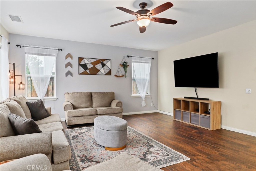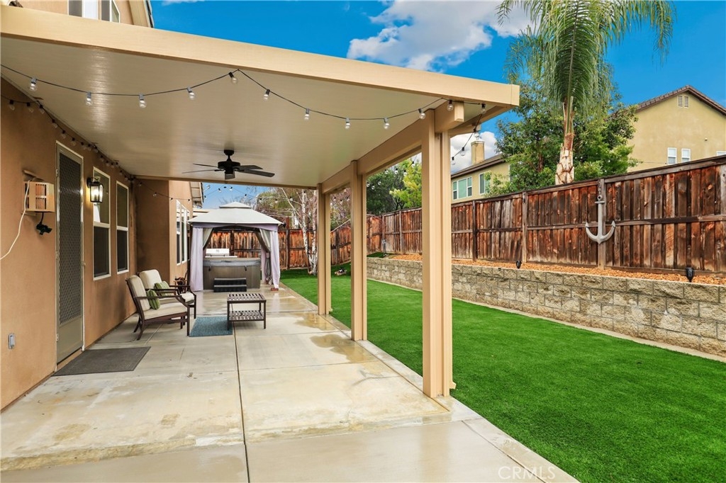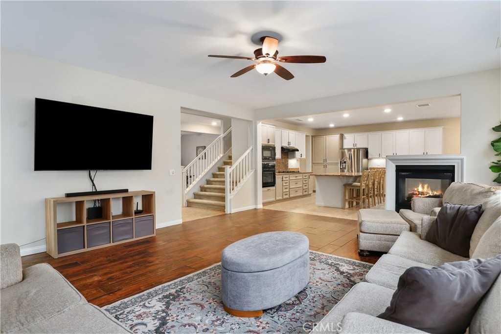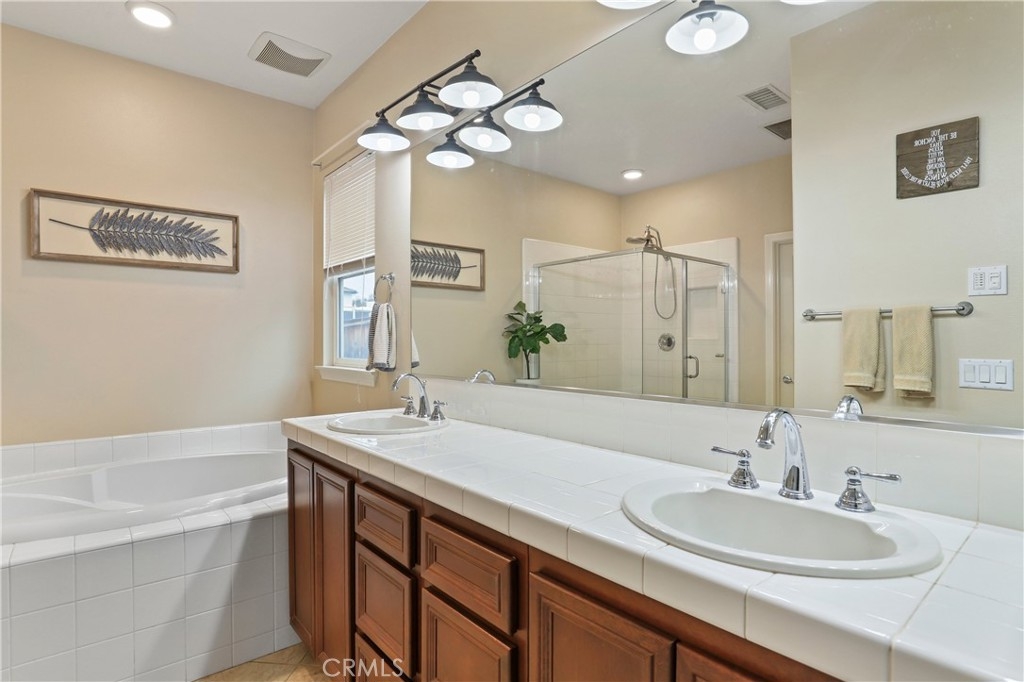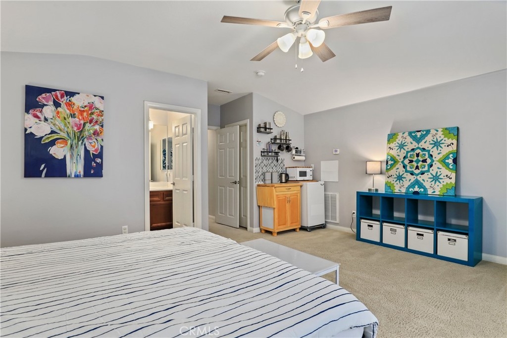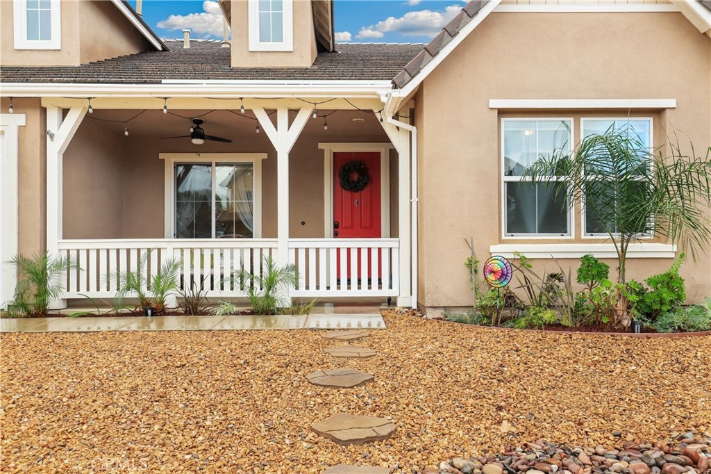 SINGLE STORY IN ADELINE FARMS- This is such a spectacular layout! As you pull up you will notice the 3 Car Garage and striking red Front Door. There is potential RV Parking too! The cozy front porch has a gate to keep pets in or visitors out. What a perfect place to enjoy your morning coffee! Welcome to your 4 Bedroom 3.5 Bath Home where you get single story living with the bonus of a 2nd Primary Suite that features wall to wall carpet, a walk in closet, a small little "Kitchenette/Coffee Bar", and a full Bathroom upstairs. Situated in the highly desirable Temecula School District, this popular Neighborhood has LOW TAXES, NO HOA, SOLAR, several parks, miles of hiking trails, and it's minutes to the freeway. The entire house has been recently painted and there is NO CARPET DOWNSTAIRS- instead you will enjoy beautiful LVP Flooring. You're going to love the Kitchen- It has a ton of cabinet and counter space. Featuring luxurious 2 tone cabinets, a huge island with seating for 4, a dining space, and a desk area that is perfect for a coffee bar- this Chef Style Kitchen is a DREAM! It opens up to the oversized Livingroom with a RARE DOUBLE SIDED FIREPLACE and there is a French Door leading outside. 2 Bedrooms are situated on one side of the house with a full Bathroom in between that has a dual sink vanity and shower/tub combo. The Primary Suite is behind the Kitchen, offering plenty of privacy from the rest of the home. It has a standalone shower, soaking tub, dual sink vanities, and a walk in closet. Adjacent to the Primary Suite is a "BONUS" Room that could be Bedroom #5 or home office space. There is a 1/2 Bath and Laundry Room as well. The Formal Dining Room can also be used as a Formal Livingroom- it's right at the front of the house. Many of the other upgrades to this home include newer hot water tank & expansion tank, ceiling fans, updated Electrical GFCI outlets, Wiring for speakers/surround in the living room & Primary Suite, new blinds and window treatments, & Whole House Fan. The backyard showcases a patio cover, hot tub, and turf with a planter along the fence perimeter that is prepped for some flowers or maybe even a veggie garden. This house is DEFINITELY A MUST SEE!