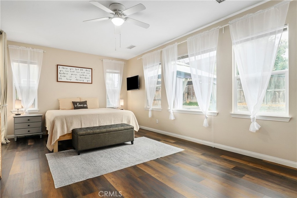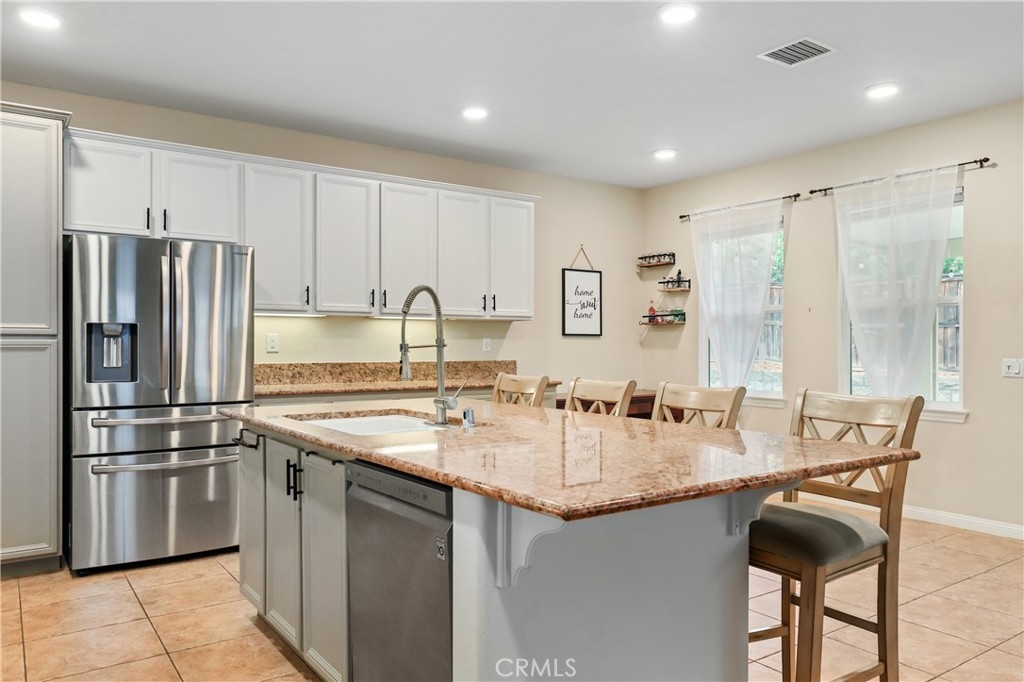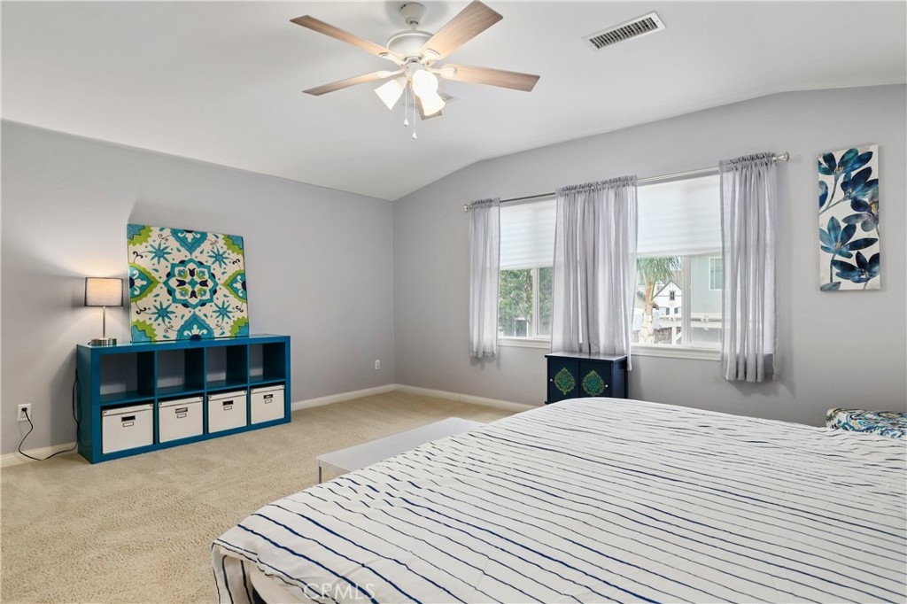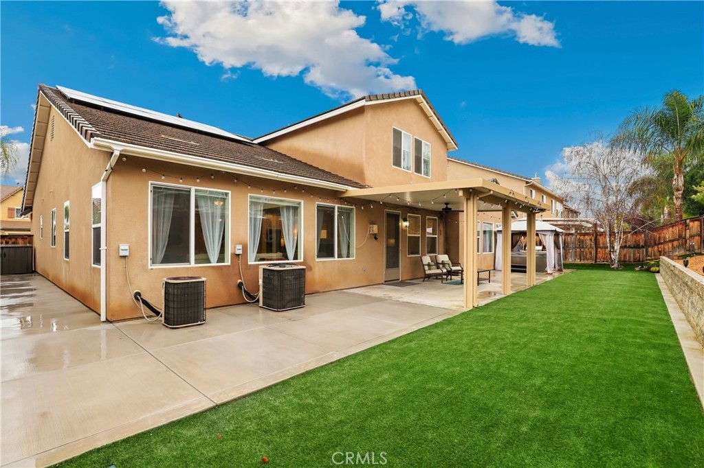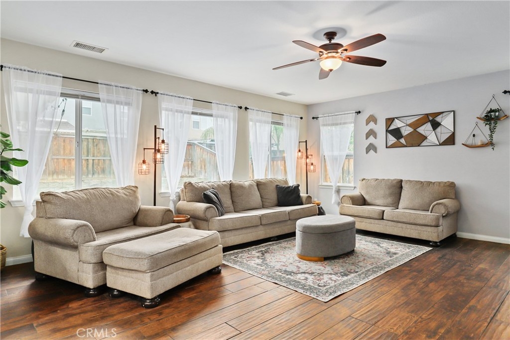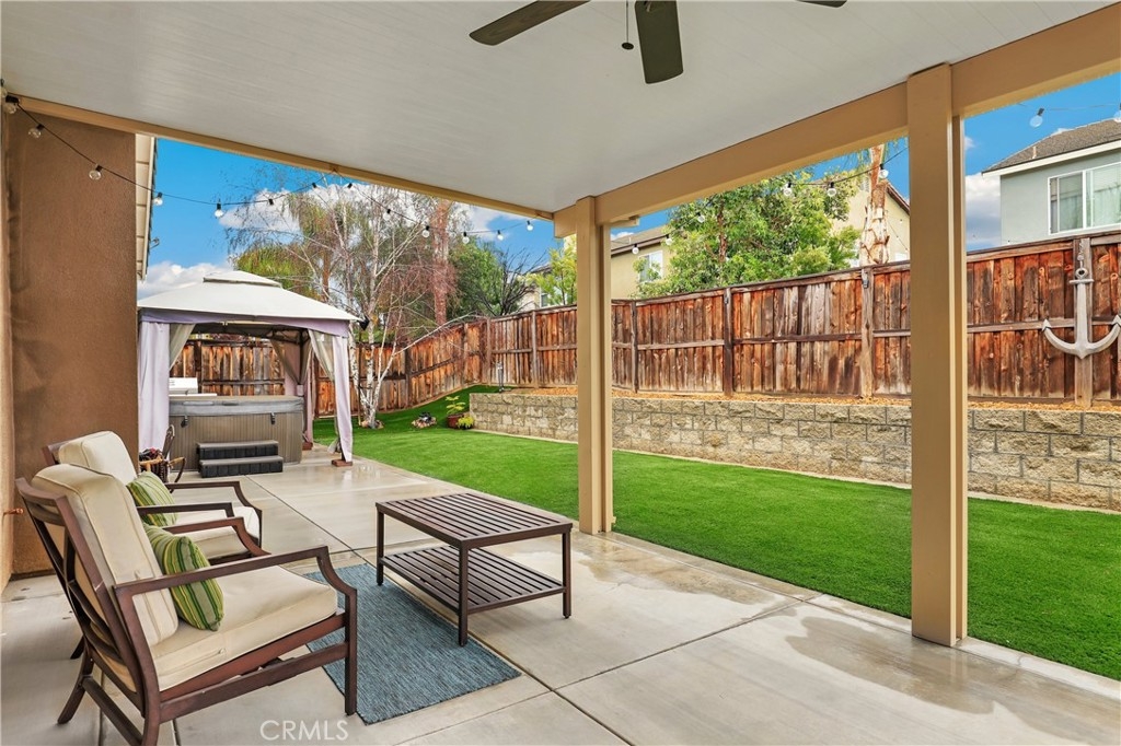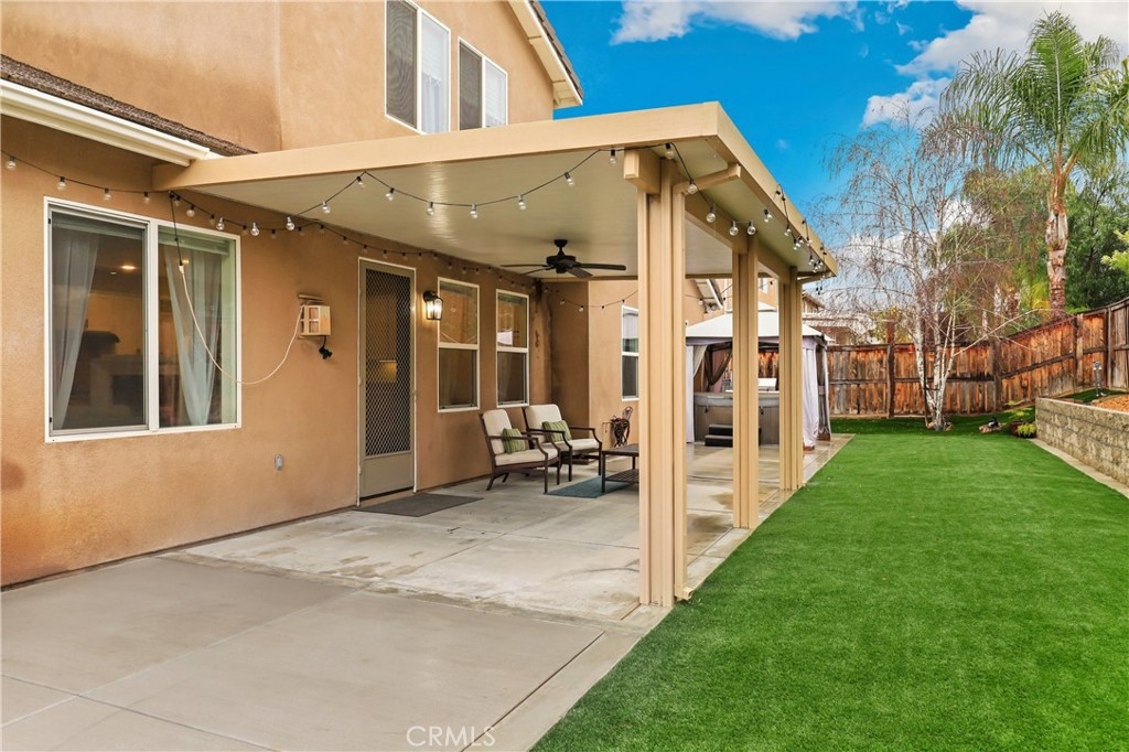 SINGLE STORY IN ADELINE FARMS- This is such a spectacular layout! As you pull up you will notice the 3 Car Garage and striking red Front Door. There is potential RV Parking too! The cozy front porch has a gate to keep pets in or visitors out. What a perfect place to enjoy your morning coffee! Welcome to your 4 Bedroom 3.5 Bath Home where you get single story living with the bonus of a 2nd Primary Suite that features wall to wall carpet, a walk in closet, a small little "Kitchenette/Coffee Bar", and a full Bathroom upstairs. Situated in the highly desirable Temecula School District, this popular Neighborhood has LOW TAXES, NO HOA, SOLAR, several parks, miles of hiking trails, and it's minutes to the freeway. The entire house has been recently painted and there is NO CARPET DOWNSTAIRS- instead you will enjoy beautiful LVP Flooring. You're going to love the Kitchen- It has a ton of cabinet and counter space. Featuring luxurious 2 tone cabinets, a huge island with seating for 4, a dining space, and a desk area that is perfect for a coffee bar- this Chef Style Kitchen is a DREAM! It opens up to the oversized Livingroom with a RARE DOUBLE SIDED FIREPLACE and there is a French Door leading outside. 2 Bedrooms are situated on one side of the house with a full Bathroom in between that has a dual sink vanity and shower/tub combo. The Primary Suite is behind the Kitchen, offering plenty of privacy from the rest of the home. It has a standalone shower, soaking tub, dual sink vanities, and a walk in closet. Adjacent to the Primary Suite is a "BONUS" Room that could be Bedroom #5 or home office space. There is a 1/2 Bath and Laundry Room as well. The Formal Dining Room can also be used as a Formal Livingroom- it's right at the front of the house. Many of the other upgrades to this home include newer hot water tank & expansion tank, ceiling fans, updated Electrical GFCI outlets, Wiring for speakers/surround in the living room & Primary Suite, new blinds and window treatments, & Whole House Fan. The backyard showcases a patio cover, hot tub, and turf with a planter along the fence perimeter that is prepped for some flowers or maybe even a veggie garden. This house is DEFINITELY A MUST SEE!