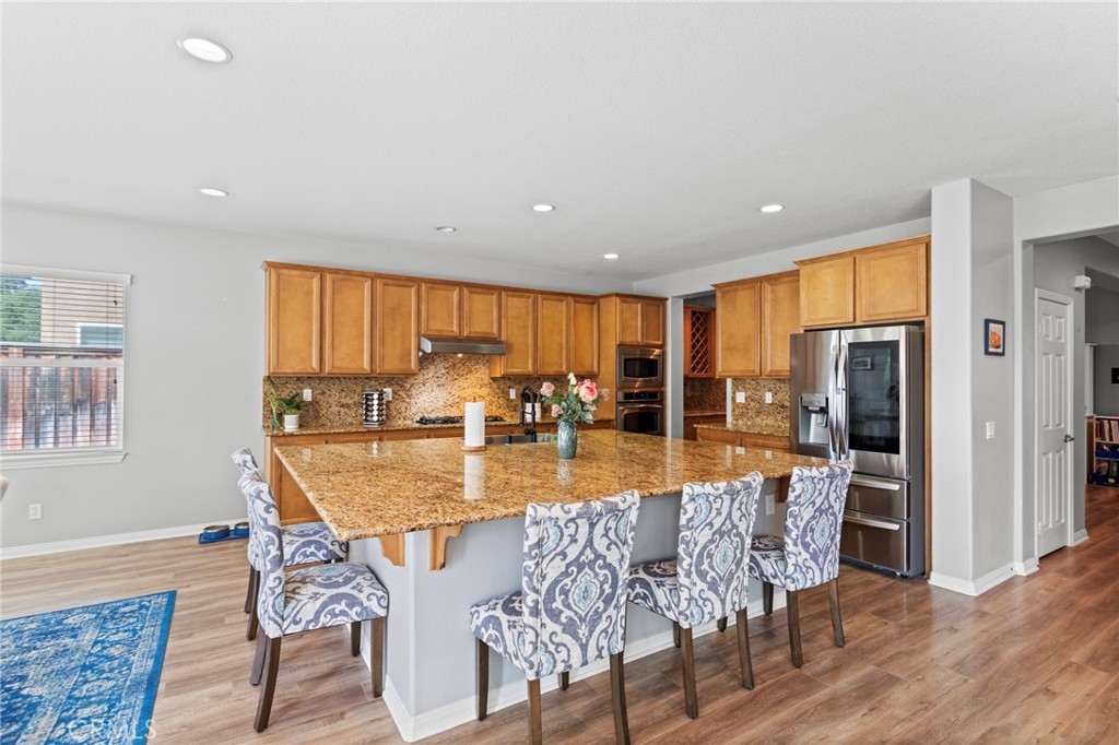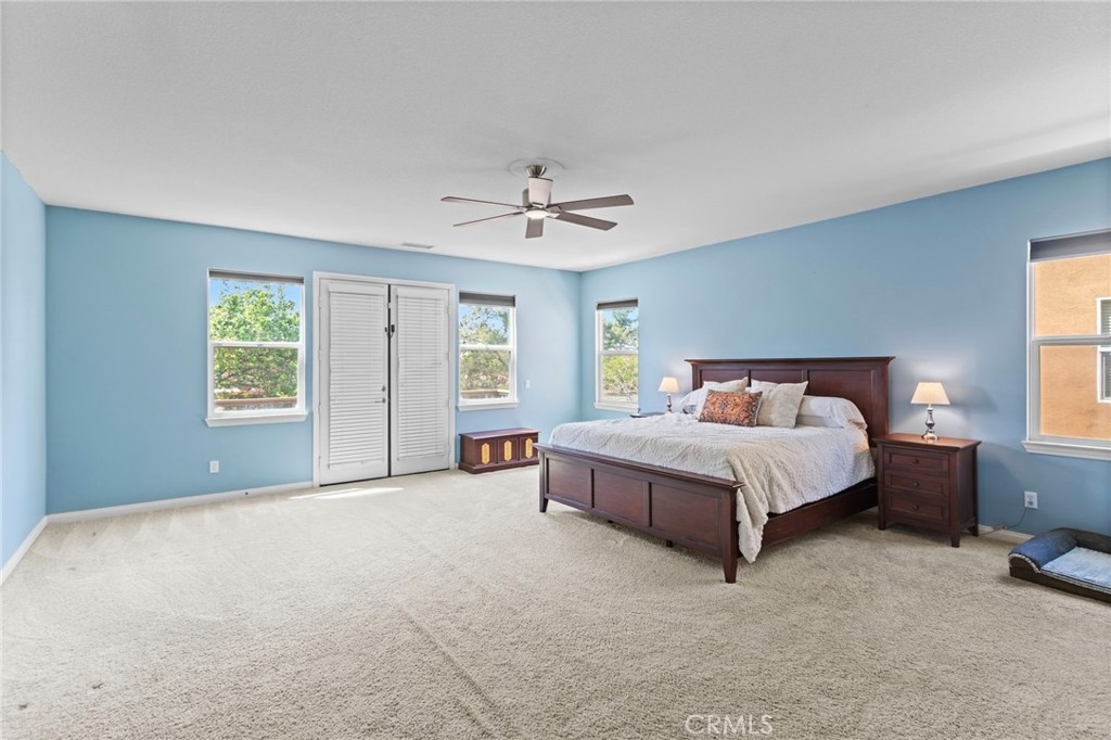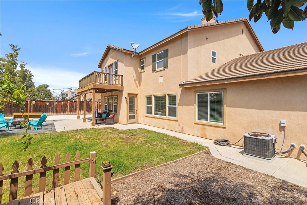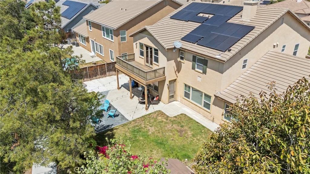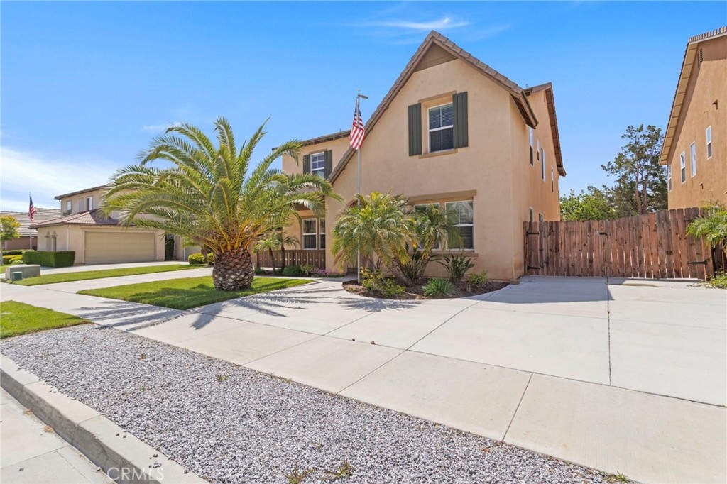 BACK ON MARKET!!! Let the buyers loss be your Opportunity! Best priced home on the market with No HOA, RV parking, low tax base & so much living space. Welcome to this stunning 5 bedroom, 4bath home located within the award-winning Temecula School District. Offering a perfect blend of elegance, comfort, and practicality, this spacious property boasts excellent curb appeal with mature Queen Palm and low-maintenance landscaping. The large, easy-access RV parking and 3-car tandem garage provide ample space for vehicles and toys. Inside, the 1st floor features a bedroom and full bathroom, ideal for guests or multigenerational living. A versatile living room (den), currently used as a bedroom, offers flexible space. The formal dining room flows into an impressive chef’s kitchen, complete with a huge center island, abundant cabinets, a built-in microwave oven combo, a five-burner cooktop, and a walk-in pantry—perfect for culinary enthusiasts. The spacious family room with white built-in cabinetry and storage, a cozy fireplace with modern tile accents, and ceiling fans create a warm, inviting atmosphere. Upstairs, you'll find 3 secondary bedrooms, 2 full sized bathrooms, along with a built-in upstairs office that provides additional functional space. Travel down the hall to a massive primary suite, featuring a large en suite bathroom with dual vanities, a relaxing soaking tub, separate shower, and a generous walk-in closet. Directly off the master suite, enjoy the oversized balcony overlooking the backyard. The backyard is designed for outdoor living and entertaining, with a gravel fire pit area, lush grass space, and a 10x10 shed that stays with the property. Energy efficiency is enhanced by 22 solar panels, helping to keep utility costs down. This home combines spacious living areas, modern amenities, and a prime location within top Temecula school district. Whether you're hosting gatherings, enjoying quiet nights by the fire pit, or relaxing on the balcony, this property offers everything you need for comfortable, stylish living.