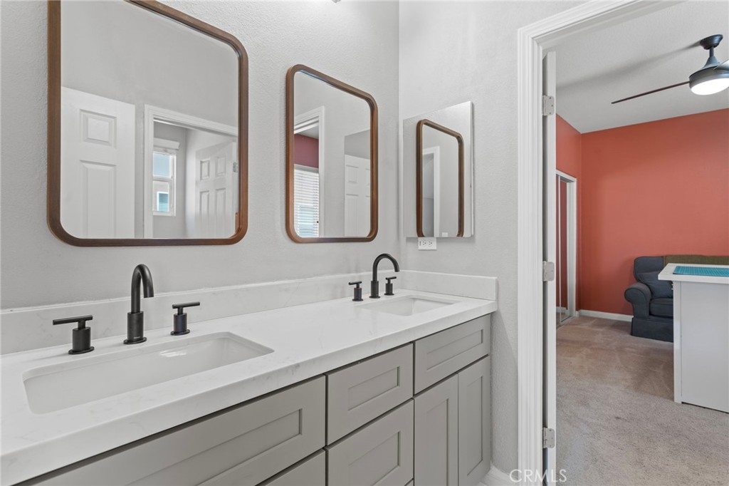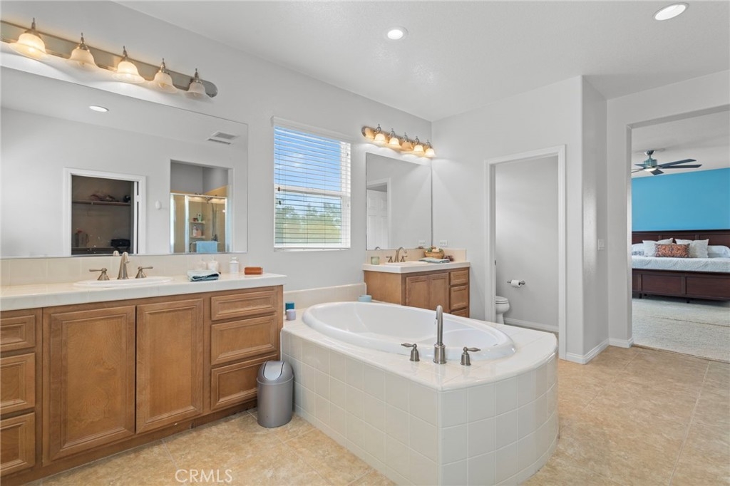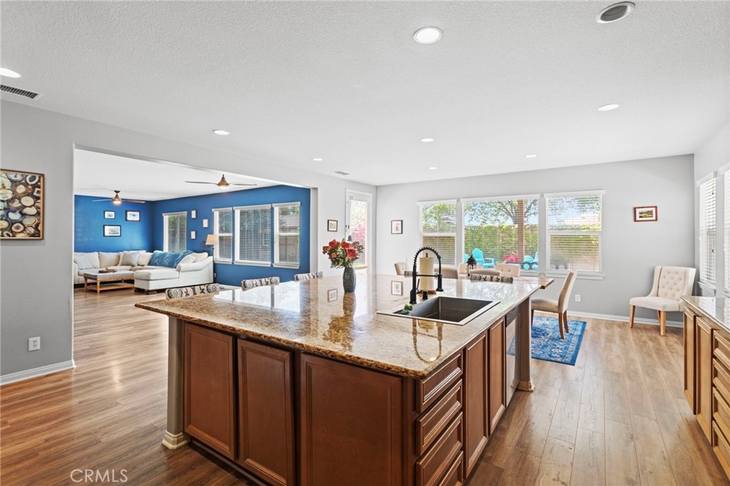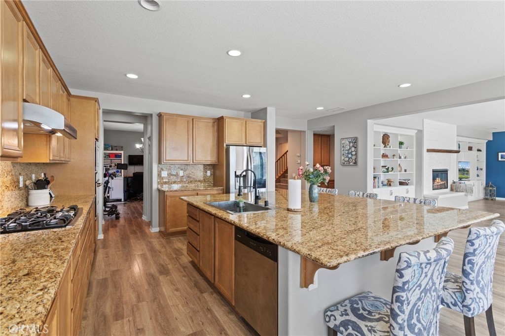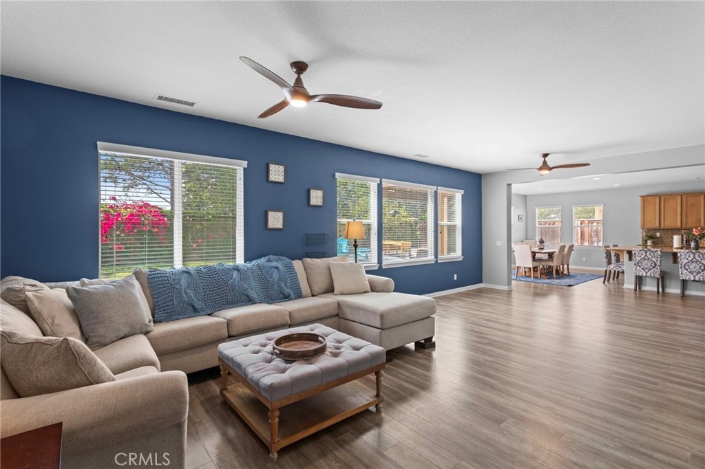 BACK ON MARKET!!! Let the buyers loss be your Opportunity! Best priced home on the market with No HOA, RV parking, low tax base & so much living space. Welcome to this stunning 5 bedroom, 4bath home located within the award-winning Temecula School District. Offering a perfect blend of elegance, comfort, and practicality, this spacious property boasts excellent curb appeal with mature Queen Palm and low-maintenance landscaping. The large, easy-access RV parking and 3-car tandem garage provide ample space for vehicles and toys. Inside, the 1st floor features a bedroom and full bathroom, ideal for guests or multigenerational living. A versatile living room (den), currently used as a bedroom, offers flexible space. The formal dining room flows into an impressive chef’s kitchen, complete with a huge center island, abundant cabinets, a built-in microwave oven combo, a five-burner cooktop, and a walk-in pantry—perfect for culinary enthusiasts. The spacious family room with white built-in cabinetry and storage, a cozy fireplace with modern tile accents, and ceiling fans create a warm, inviting atmosphere. Upstairs, you'll find 3 secondary bedrooms, 2 full sized bathrooms, along with a built-in upstairs office that provides additional functional space. Travel down the hall to a massive primary suite, featuring a large en suite bathroom with dual vanities, a relaxing soaking tub, separate shower, and a generous walk-in closet. Directly off the master suite, enjoy the oversized balcony overlooking the backyard. The backyard is designed for outdoor living and entertaining, with a gravel fire pit area, lush grass space, and a 10x10 shed that stays with the property. Energy efficiency is enhanced by 22 solar panels, helping to keep utility costs down. This home combines spacious living areas, modern amenities, and a prime location within top Temecula school district. Whether you're hosting gatherings, enjoying quiet nights by the fire pit, or relaxing on the balcony, this property offers everything you need for comfortable, stylish living.