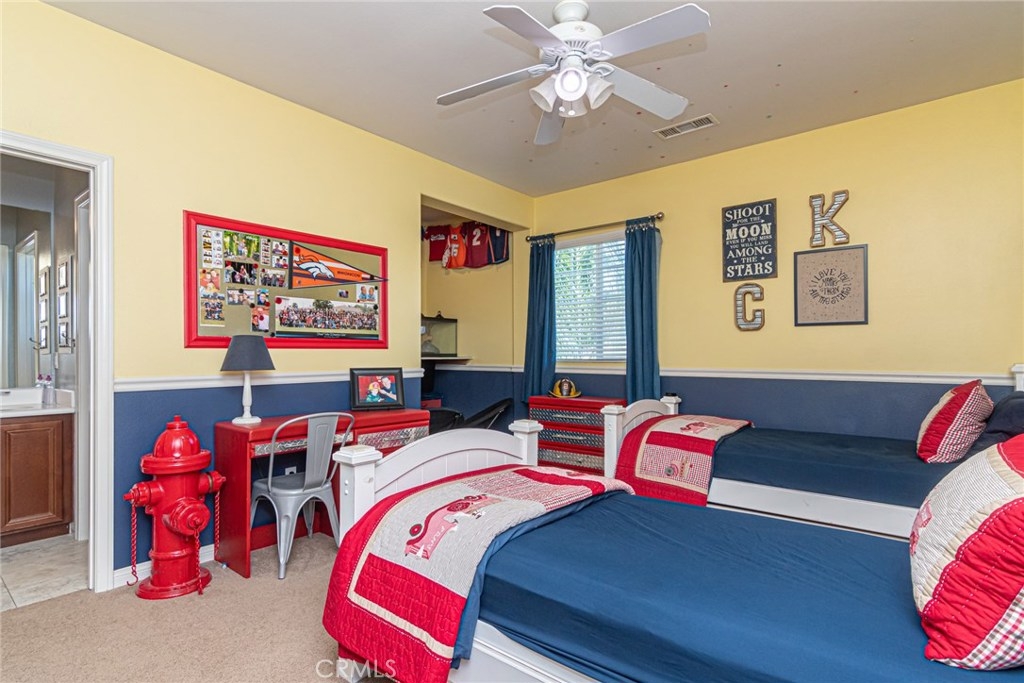 Largest model in the desirable Adeline's Farm development in French Valley. This home looks and shows like a model home. This 6 bedroom 4 bath home has a 4 car garage, RV/Boat parking, an office and a bonus room. 2 bedrooms downstairs with a full bath downstairs as well. Large office downstairs along with a huge bonus room that could be used as a media room, playroom, man cave, craft room, so many options. The kitchen is a highlight. Shiplap lines the spacious island. Beautiful white cabinets and grey island cabinets. There is a mud room off the kitchen and a walk in pantry. The living room has plenty of space for entertaining. Upstairs the master bedroom has 2 walk in master closets. 2 bedrooms upstairs share an adjoining bathroom and the 4th bedroom upstairs has it's own bathroom and walk in closet. The laundry room is upstairs and has a sink. Currently there are no neighbors behind and has been that way since the home was built. There is turf in the back yard and a beautiful aluma wood patio cover. This yard has plenty of entertaining highlights. Has a fire pit and a built in bbq. The side yard is large enough for RV/Boat parking. It has 2 separate 2 garages. There are 2 attics both with storage space. Ring door bell with recording device on property. Solar lease to be assumed by buyers $168 a month. Located in the award winning Temecula school district. Minutes from shopping, freeway access, and wine country. This home truly has it all. This is an absolute must see!