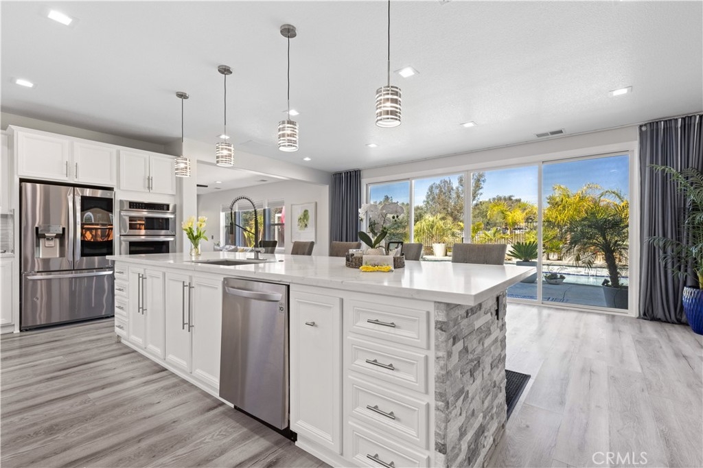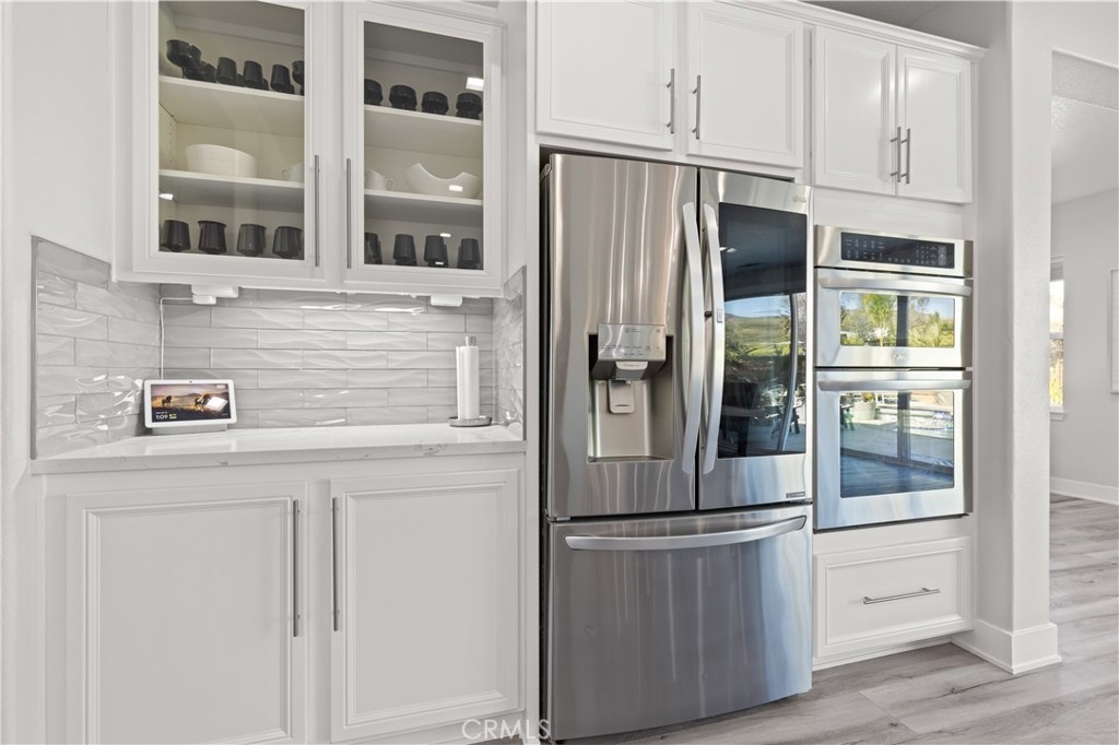 At its heart, the Chef’s Dream Kitchen offers a quartz-clad island with ample space for gourmet meal prep, counter dining, and entertaining. Custom cabinetry, high-end quartz, and premium stainless appliances complete the space, featuring: Professional-grade chef’s range: Double ovens : Built-in microwave : High-end dishwasher : Double stainless-steel wine refrigerators.