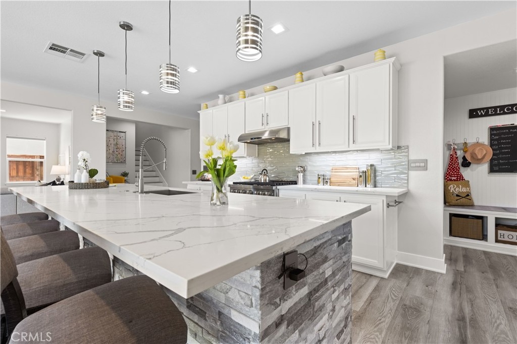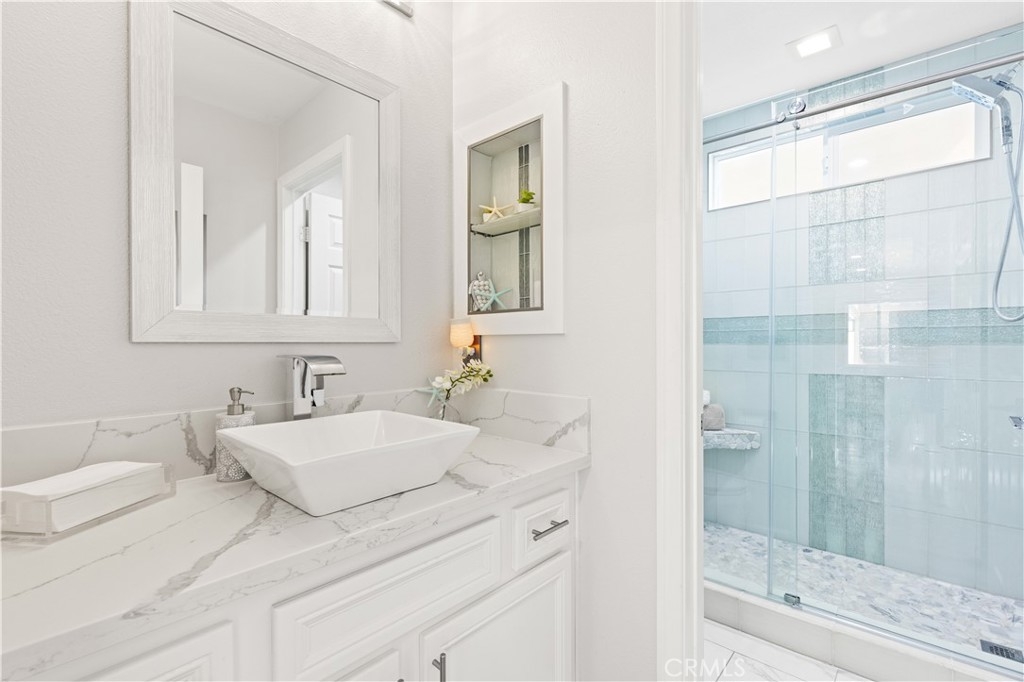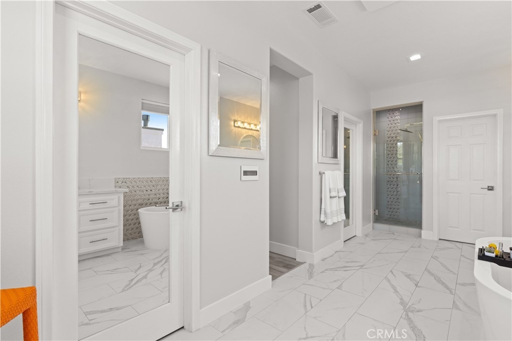 Upon entry, you’re greeted by abundant natural light and impeccable finishes. Luxury vinyl flooring flows seamlessly throughout, creating a modern aesthetic. Each bathroom is a masterpiece, featuring quartz countertops, elegant shaker cabinetry, custom tile showers, and premium fixtures that offer a spa-like retreat.