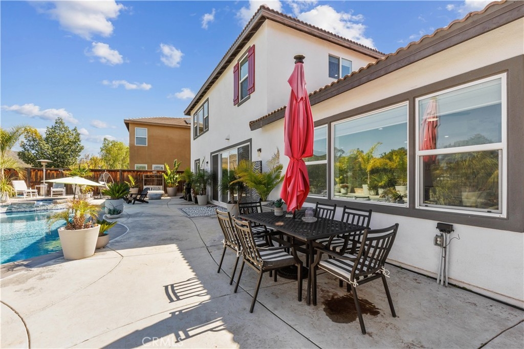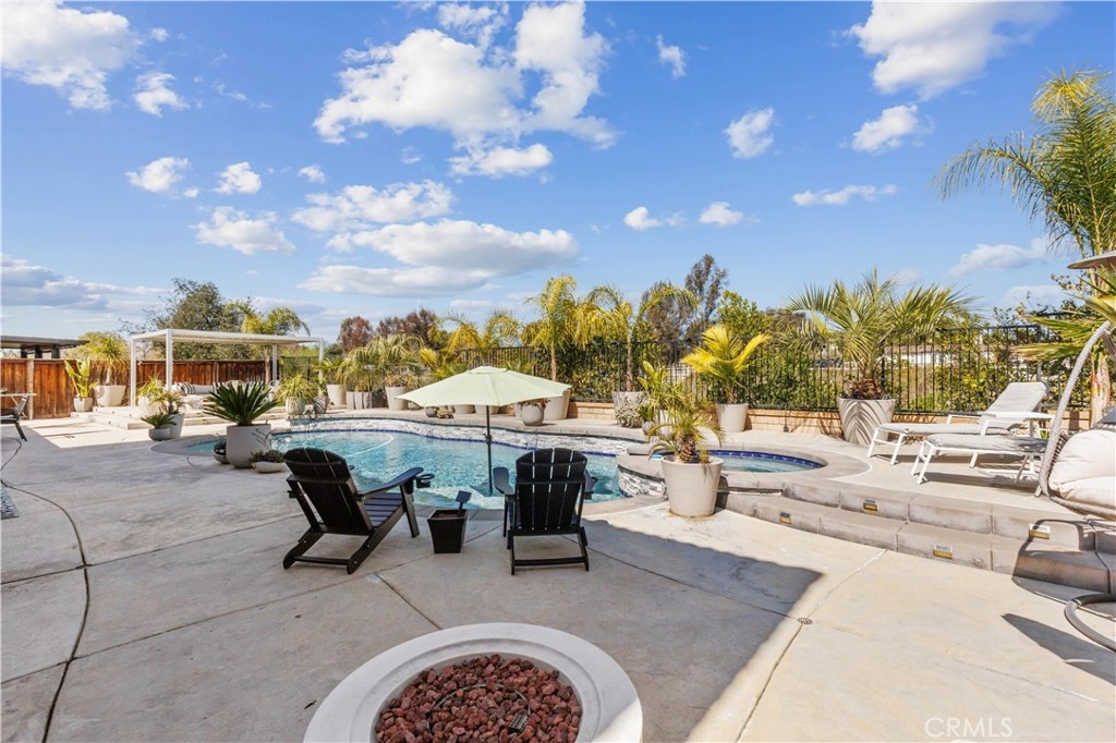 A wall of sliding glass doors opens to a resort-style backyard with a custom pool, oversized spa, firepit, and Alumawood-covered sitting area, ideal for outdoor gatherings or quiet relaxation. The unobstructed natural scenery ensures privacy and exclusivity.