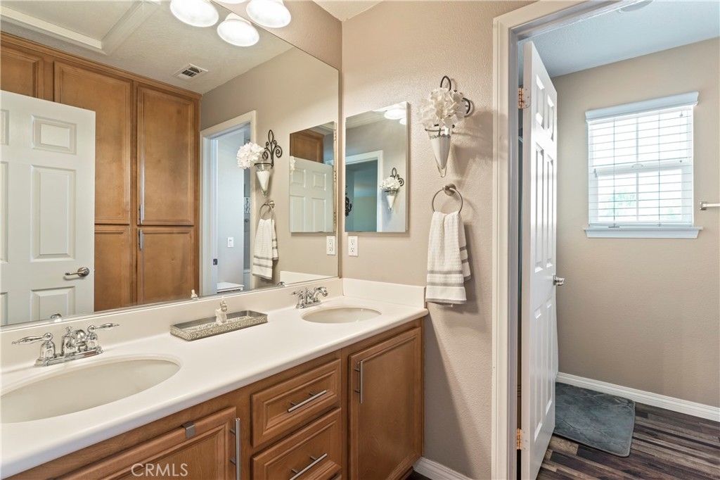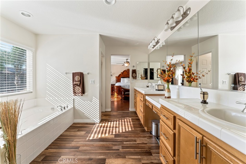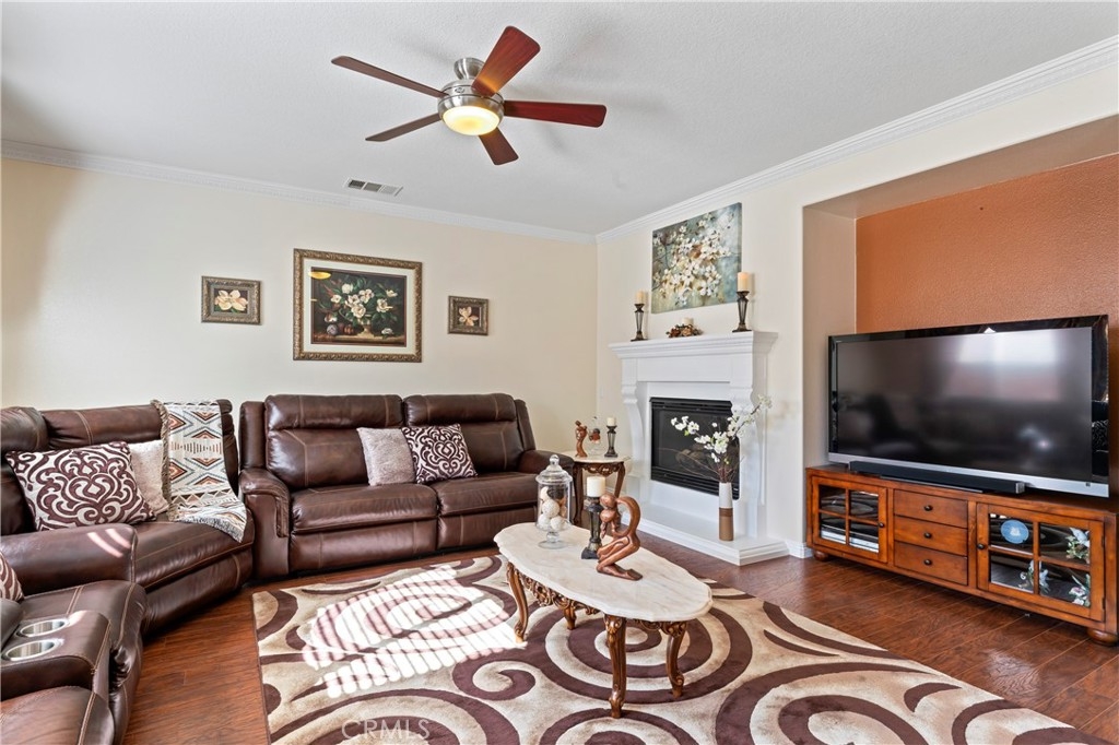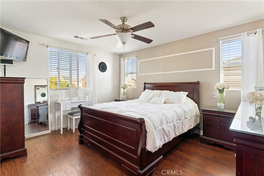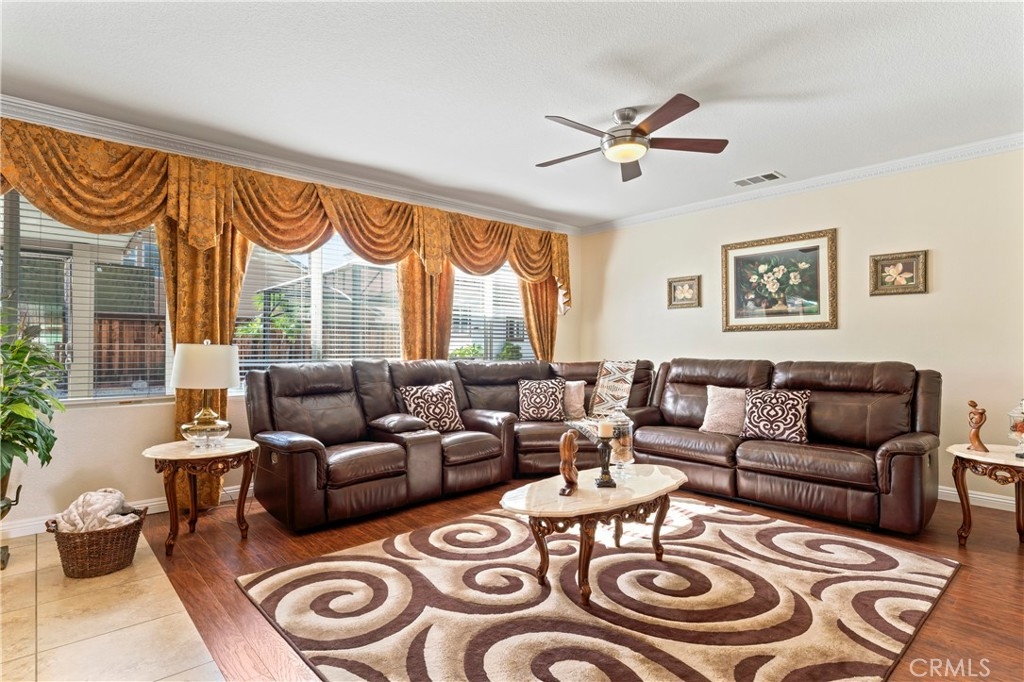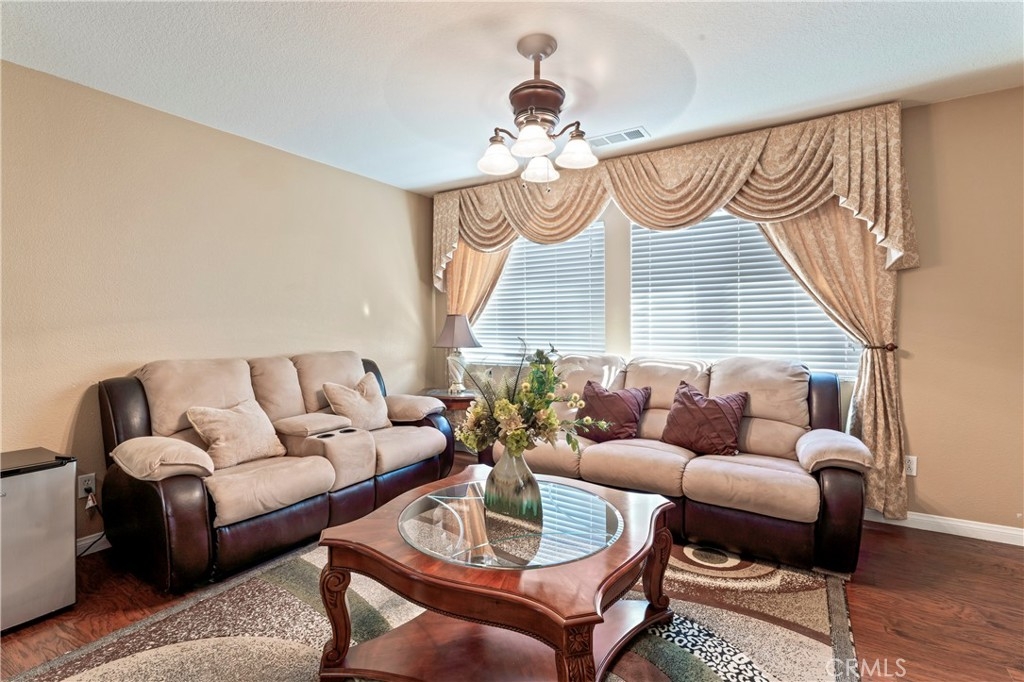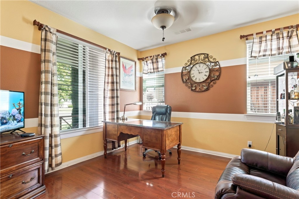 Discover this Stunning French Valley/Winchester Home in Adeline's Farms! – a True Must-See Gem! Nestled in a fantastic location with stunning curb appeal and boasting a turnkey condition, this immaculate home offers an impressive 3,010 square feet of living space and 7,841 sq ft lot. Step inside and be greeted by a spacious, beautifully tiled entryway that sets the tone for what's to come. The main floor features a versatile front office or den, as well as an elegant dining room, perfect for hosting gatherings. Additionally, downstairs is the guest bedroom with an adjacent full bath and downstairs laundry room with a laundry sink and garage access which simplifies everyday chores. The kitchen is a standout, boasting a generously sized kitchen, complete with abundant granite counter space, ample cabinets, stainless steel appliances, a convenient butler's pantry, a handy desk area, and a delightful eat-in space. The kitchen seamlessly flows into the welcoming living room, where a cozy fireplace awaits, creating the perfect spot for all to relax and enjoy. Venture upstairs, and you'll discover a versatile loft area, ideal for various purposes. Two large bedrooms are complemented by a full bathroom, providing plenty of space for your loved ones. The primary bedroom suite is a true retreat, featuring a walk-in closet, a separate shower, a relaxing tub, and dual sinks with a vanity for added convenience. Outside, the backyard is primed for entertaining, relaxation, or letting your creativity run wild to make it your own personalized oasis. It has alumawood awning with lights, a fan, and roll-up shades with beautiful, manicured landscaping. The attached 4-car tandem garage with spacious driveway for additional parking for large vehicles. The backyard has a large concrete area complete with a shed, which offers ample storage. This property has no HOA fees. The neighborhood itself is perfect for leisurely strolls, with numerous parks nearby. Plus, you're conveniently located near great Temecula schools, minutes from French Valley shopping centers, Temecula Wine Country, Lake Skinner, and Diamond Valley Lake, 15 – 20 min to 15 fwy, and Temecula Promenade making daily life a breeze. Don't miss out on the opportunity to make this incredible house your forever home. Schedule your visit today and/or come out to the open house and experience the warmth, comfort, and endless possibilities that await you in this Adeline's Farms beauty!